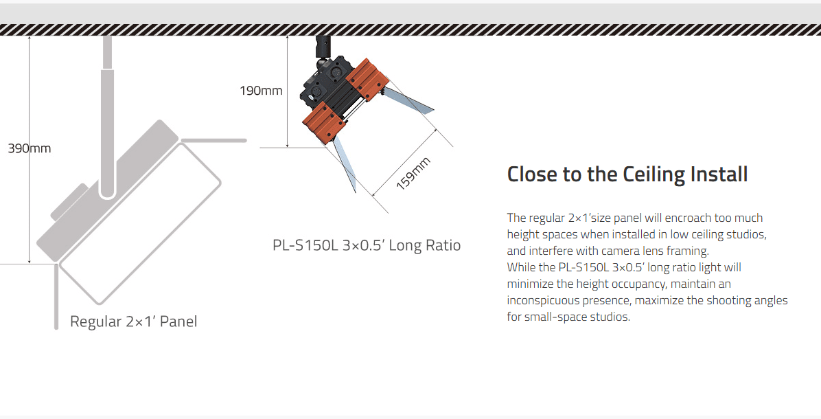 › 3x0.5' long ratio, close to the ceiling install