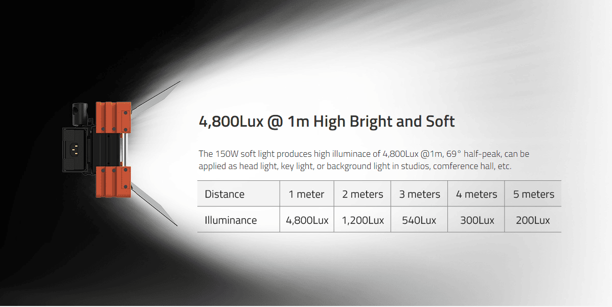 › 150W power, 4800Lux @1m ultra bright