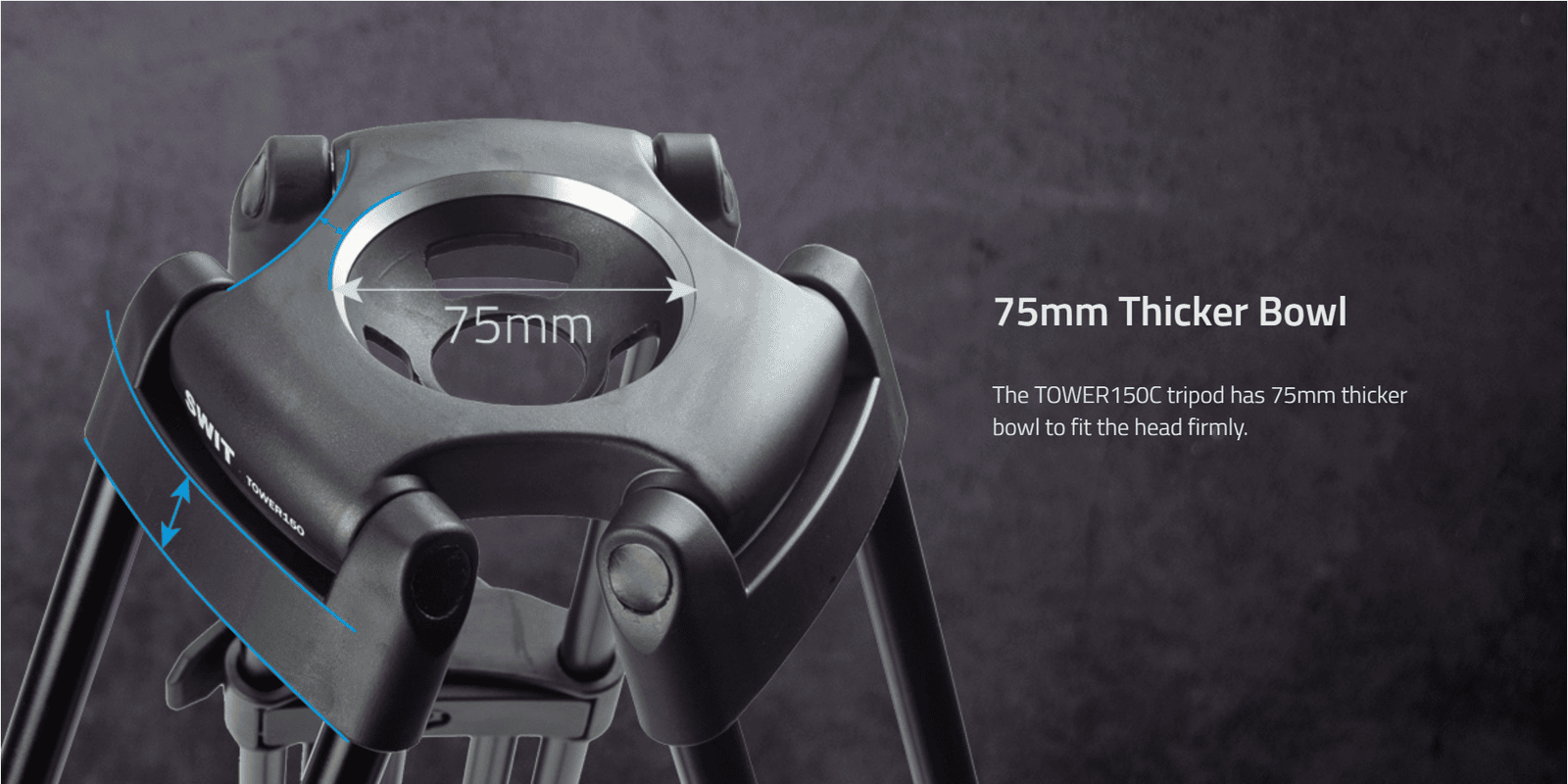 TOWER150C | Carbon-fiber Camera Tripod KIT, with SWIT TH150 Fluid Video Head, Ground Spreader, 15kg Payload, Soft Bag