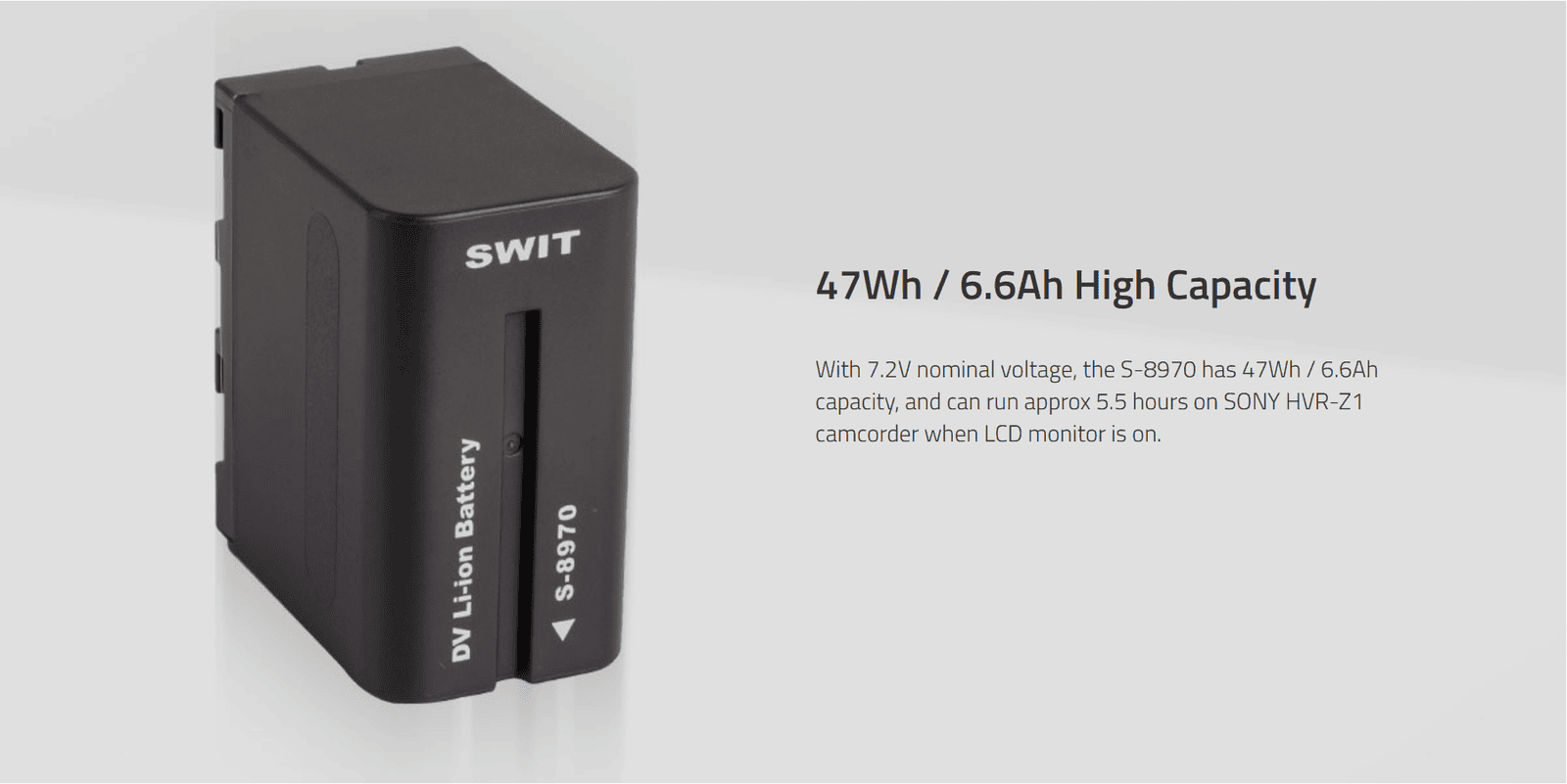 47Wh/6.6Ah NP-F-type (Sony L-series)DV battery ◆SWIT Exclusive Quality ◆Power info on camera ◆Multiple circuit protection ◆Comparable to Sony L series NP-F