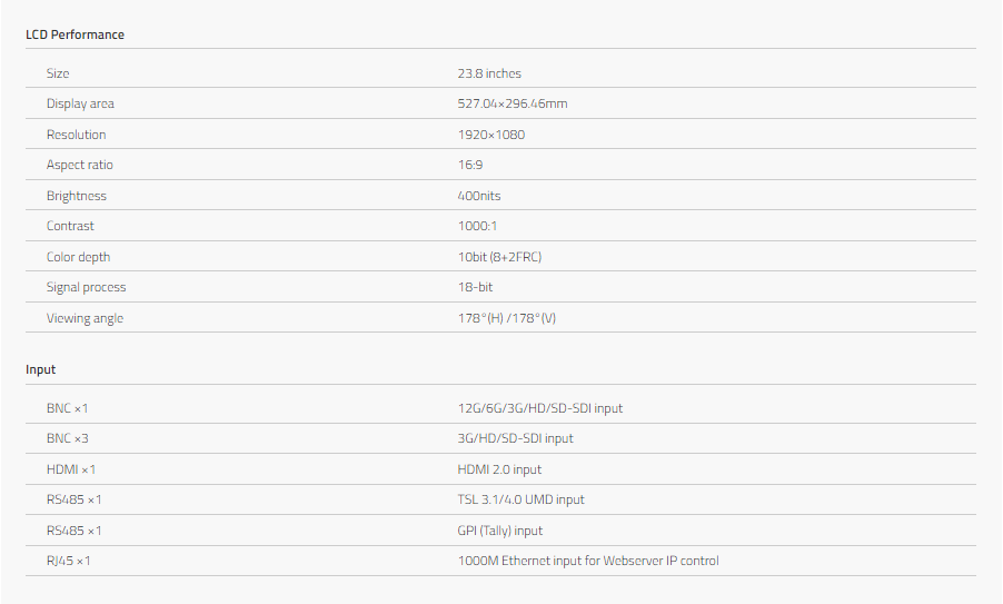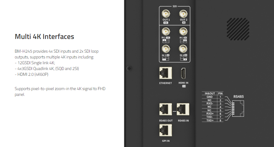 BM-H245 | 23.8" 12G-SDI 4K QD-LED HDR 100%DCI-P3 Zero-Delay professional FHD Monitor with Auto-Calibration
