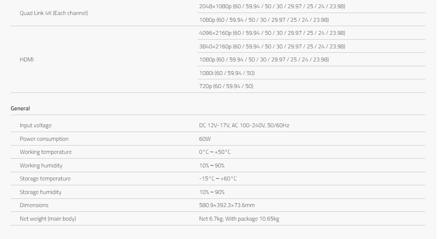 › 12G-SDI, 4x3G-SDI, HDMI2.0 4K input