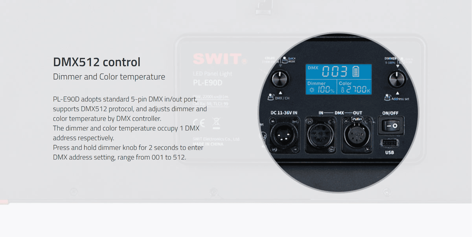 PL-E90D | 3rd Generation Natural-Born-Soft TLCI-99 90W LED Panel Light, ultra slim, SWIT patent, V-Mount, DMX, SWIT Free Design for Lighting Studios