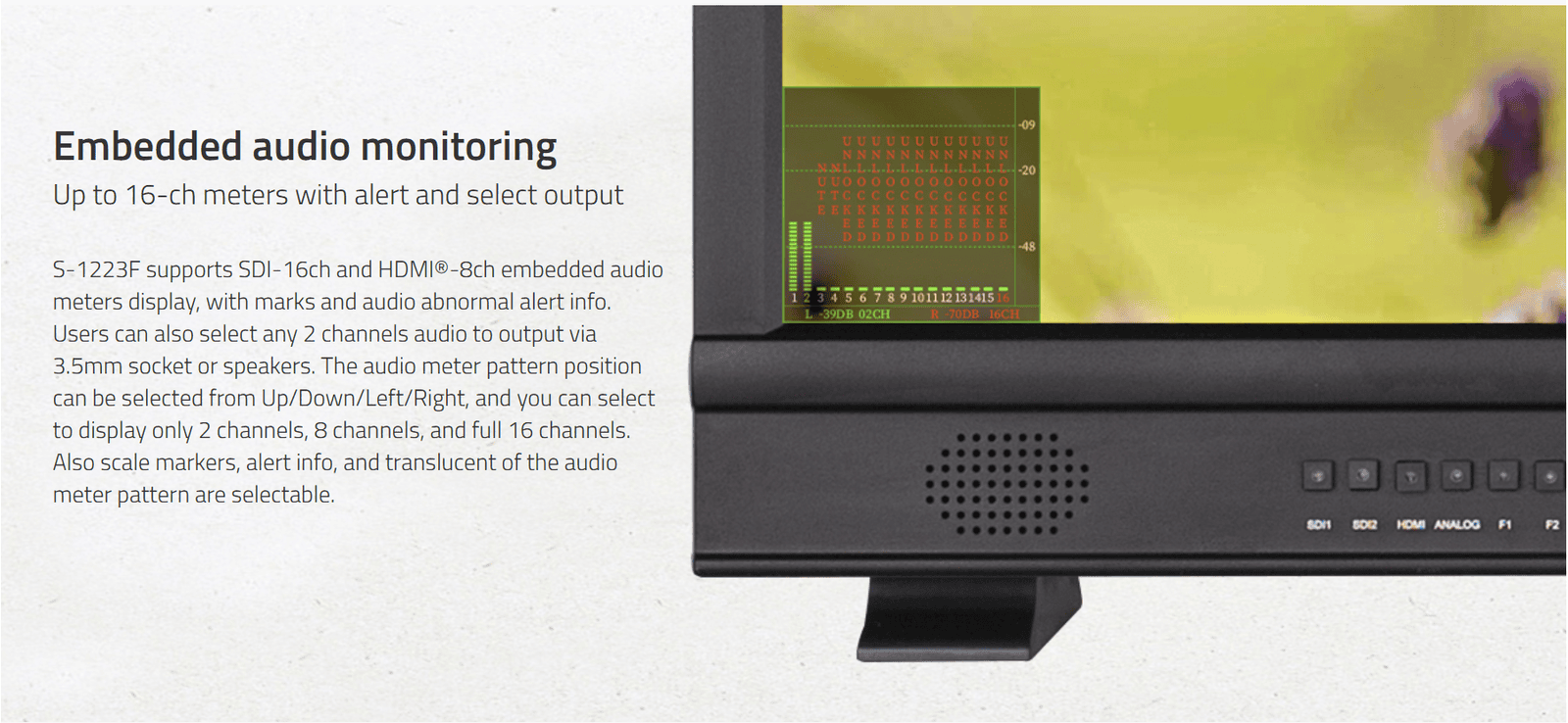› 16-ch Embedded audio meters with alert