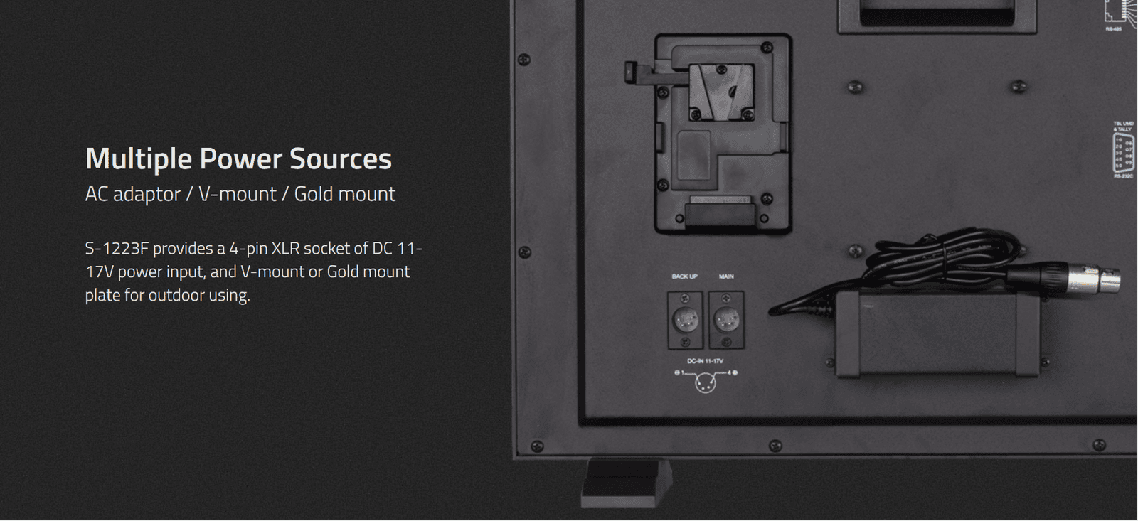 › V-mount / Gold mount battery plate optional