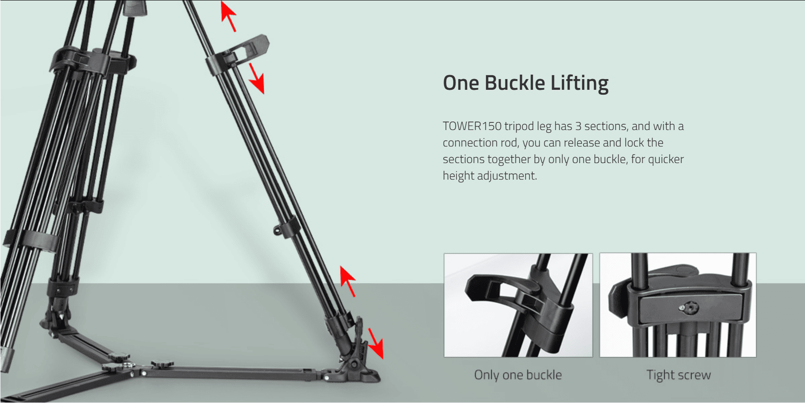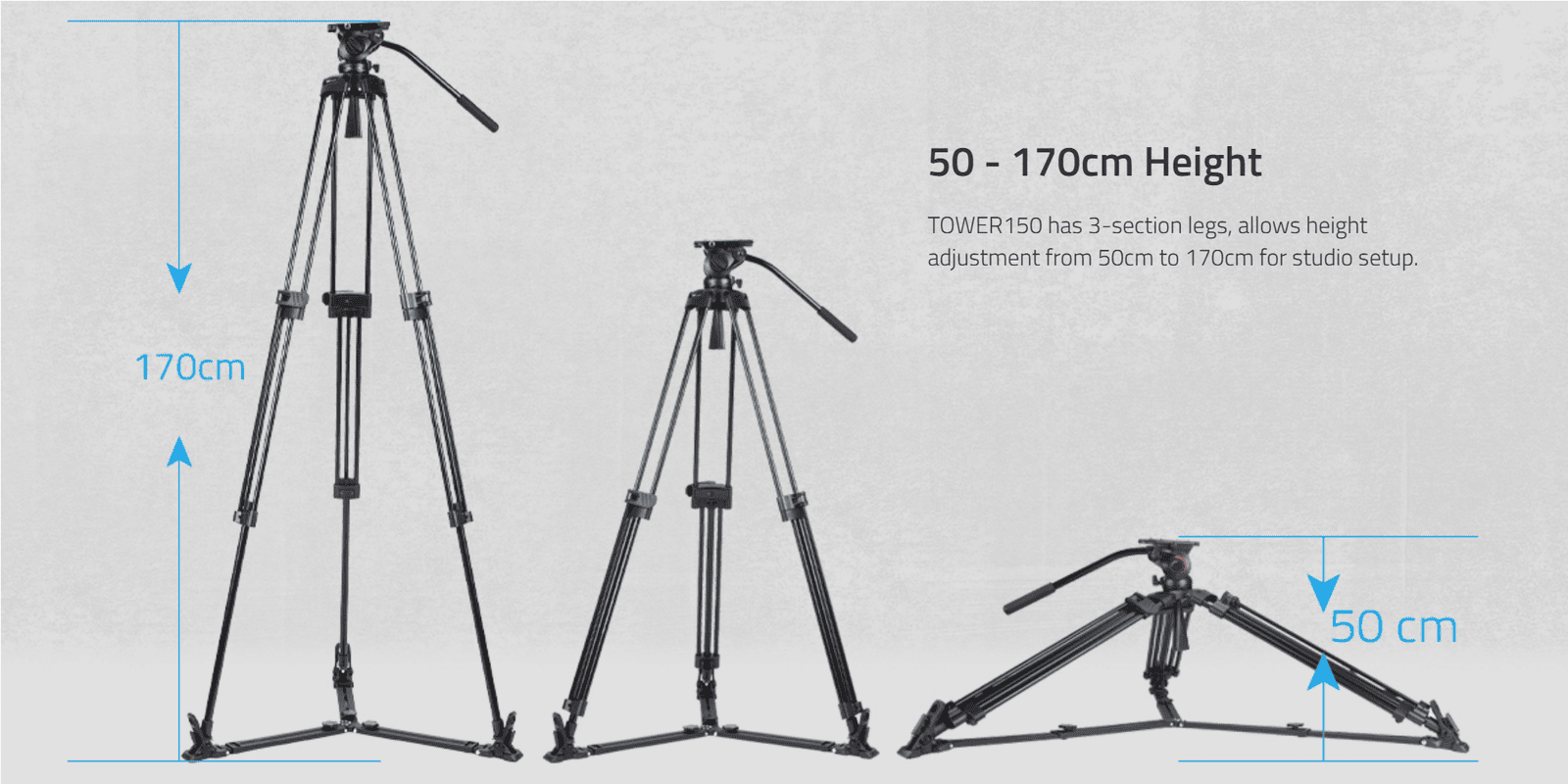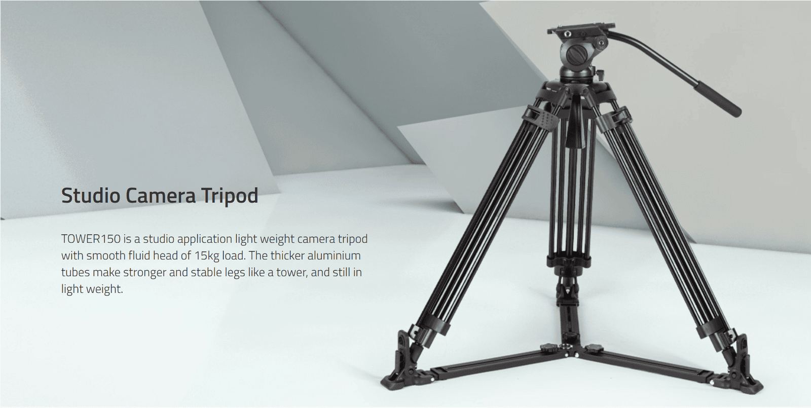 TOWER150 | Aluminum Camera Tripod KIT, with SWIT TH150 Fluid Video Head, Ground Spreader, 15kg Payload, Soft Bag