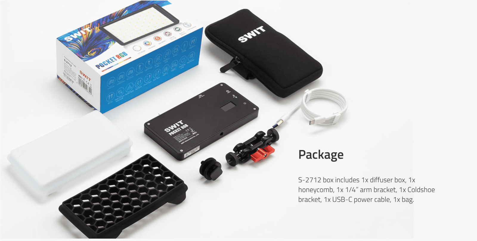 12W RGBW LED panel light, 2500K-9000K, CRI 96+, HSI RGB mode/Bi-color mode, 20 effects, built-in 3000mAh(110 minutes on 100% dimmer), CNC metal-housing, 300g, Type-C play and charge, magnetically adsorbable