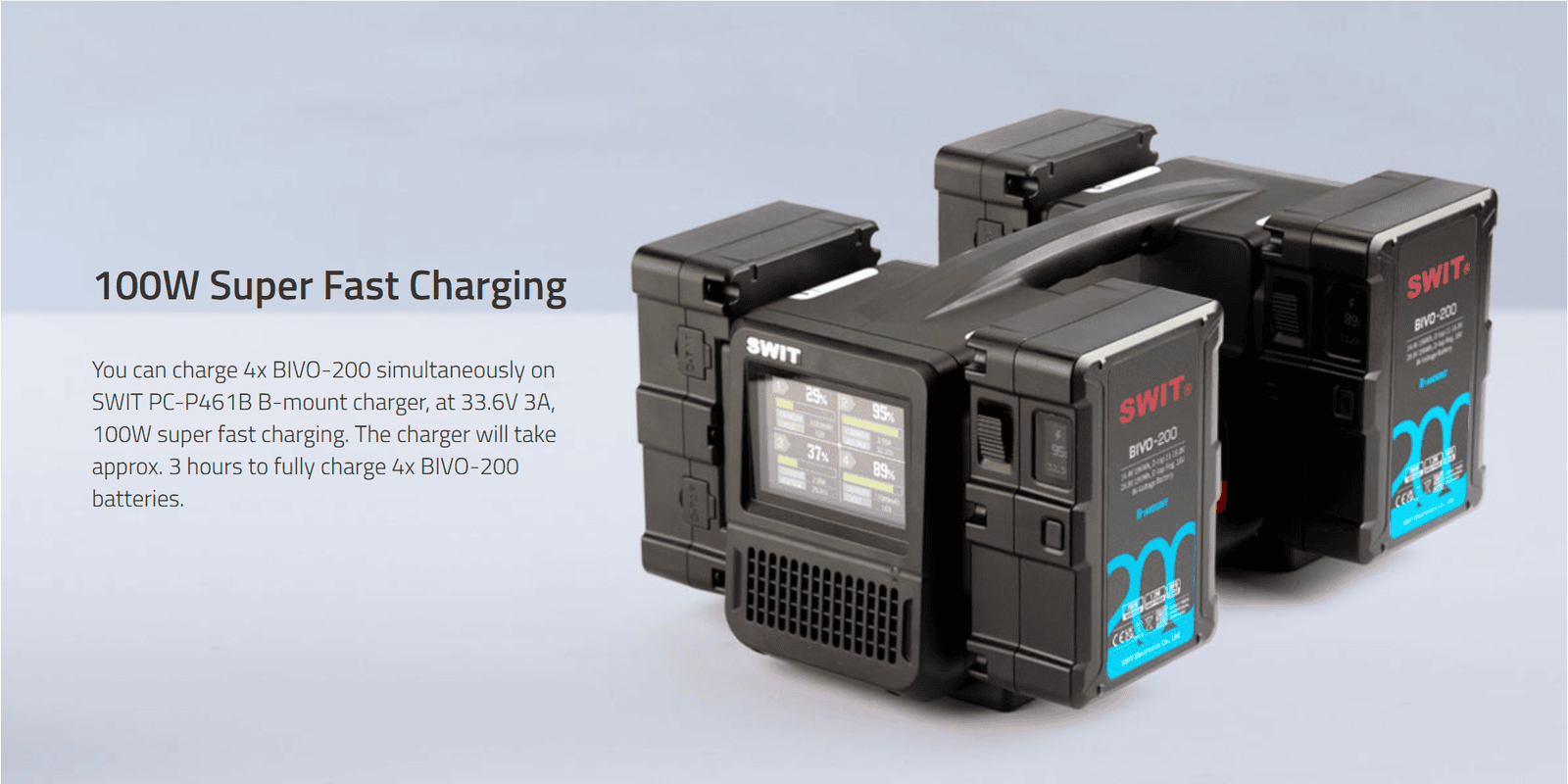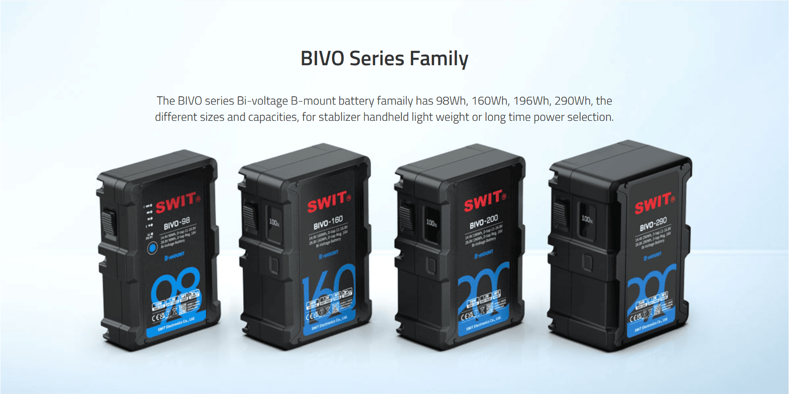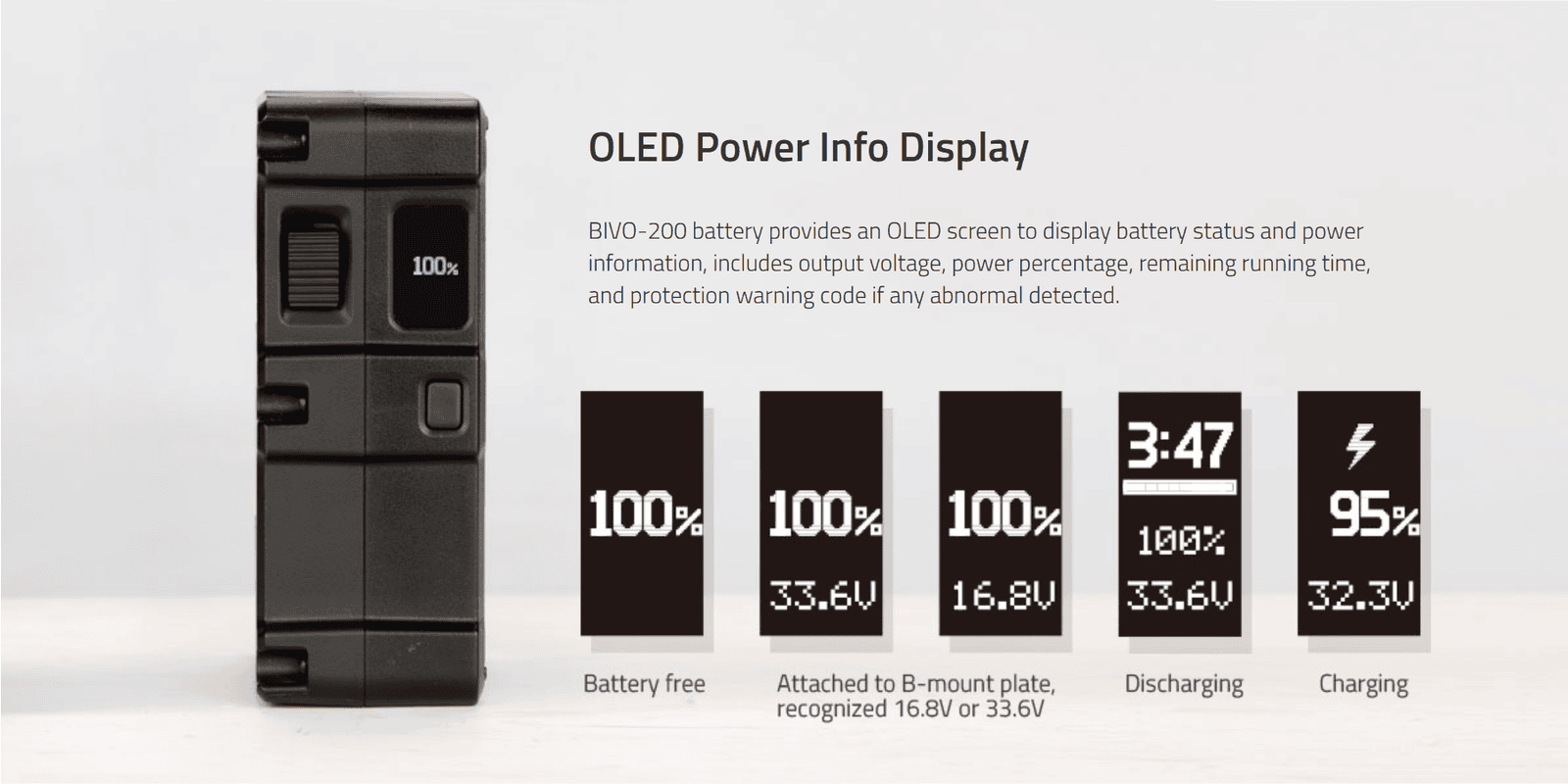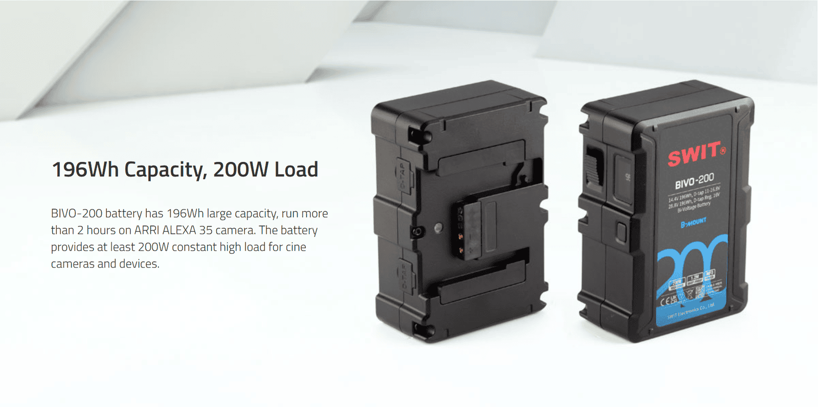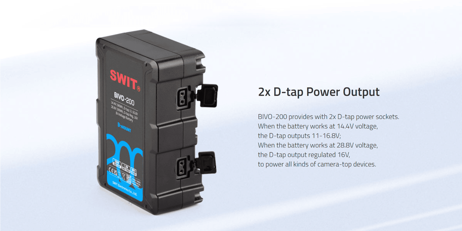 BIVO-200 | 200Wh 14V/28V 200W High Load B-Mount Battery with OLED and powerful 2xD-taps