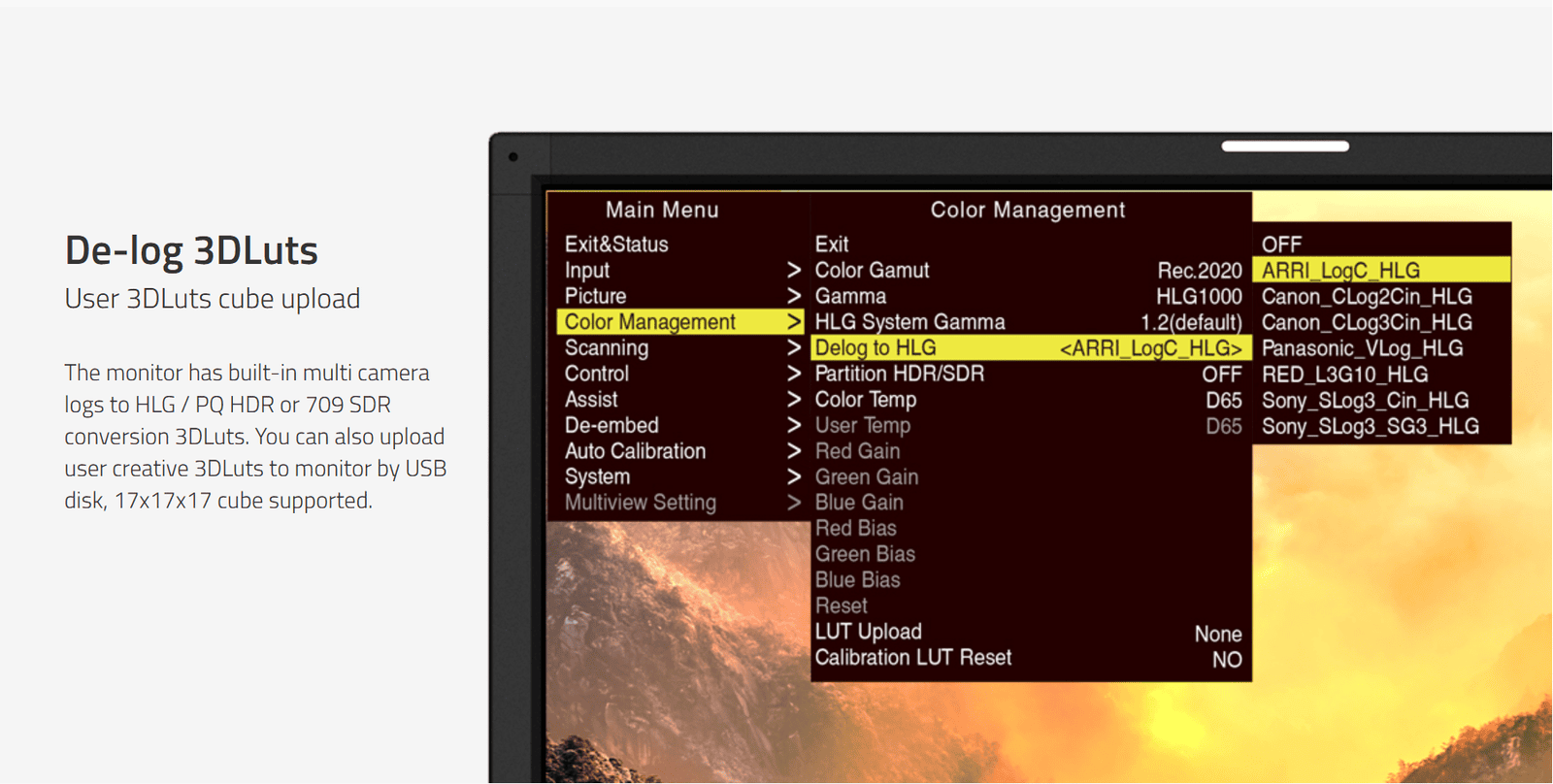 › User 3DLUTs upload via USB
